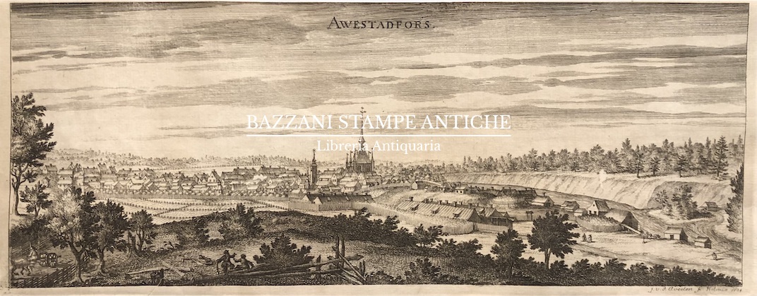 Descrizione: Incisione tratta dall’opera “Suecia antiqua et hodierna” (1693-1714) di Erik Dahlbergh. Bel foglio, margine superiore molto corto. Strappo che entra nella parte incisa, anticamente ben restaurato.