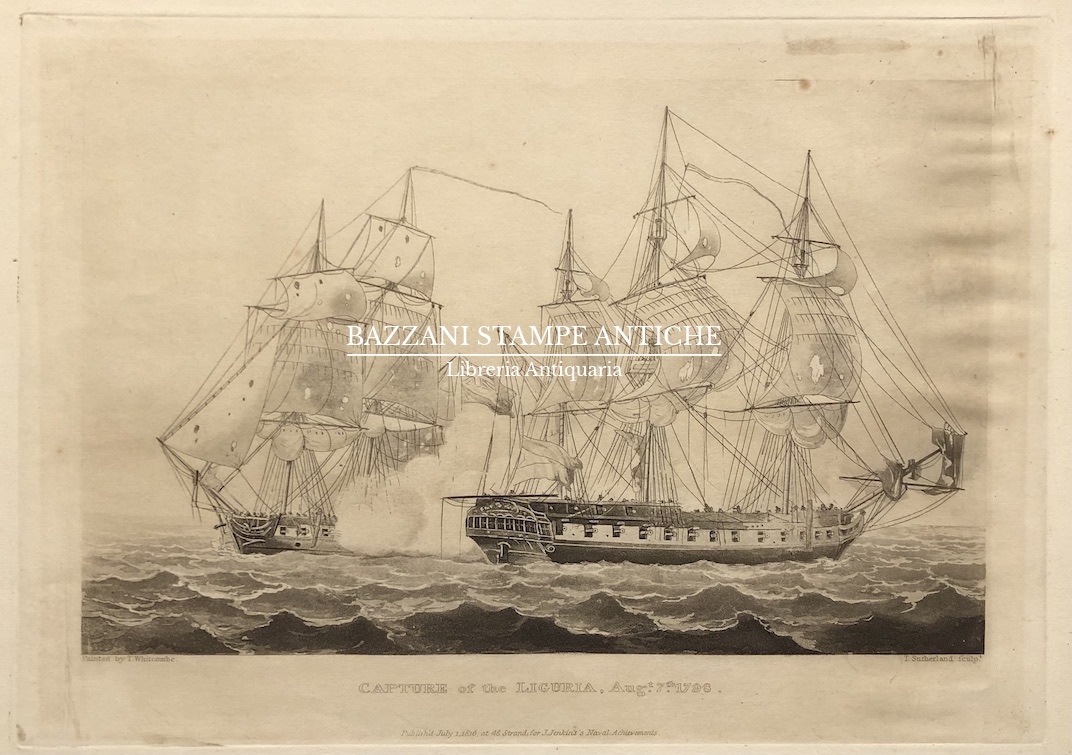 Descrizione: Acquatinta tratta dall’opera “The Naval Achievements of Great Britain, from the Year 1793 to 1817” stampata a Londra da J. Jenkins.