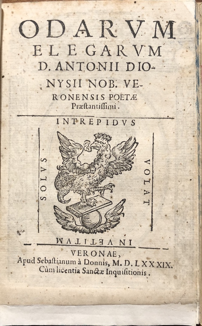 Unito a: ODARUM ELEGARUM D. ANTONII DIONYSII NOB. VERONENSIS POETÆ Præstantissimi.