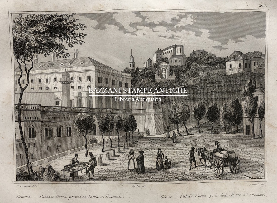 Descrizione: Incisione tratta dall’opera “L’Italia, descritta e dipinta con le sue isole, la Sicilia, Sardegna, Elba, Malta, Eolie, di Calipso ecc. […] raccolti e pubblicati da Audot padre” stampata a Torino presso Giuseppe Pomba e C. nel 1837. Bel foglio.