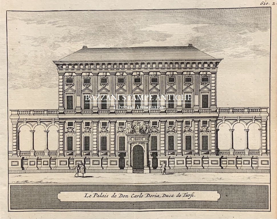 Descrizione: Incisione tratta dalla prima edizione dell’opera “Les delices de l’Italie…” di De Rogissart stampata nel 1706 a Leida da P. Van der Aa. Bel foglio con la solita leggera traccia di piega dovuta al posizionamento nell’opera.