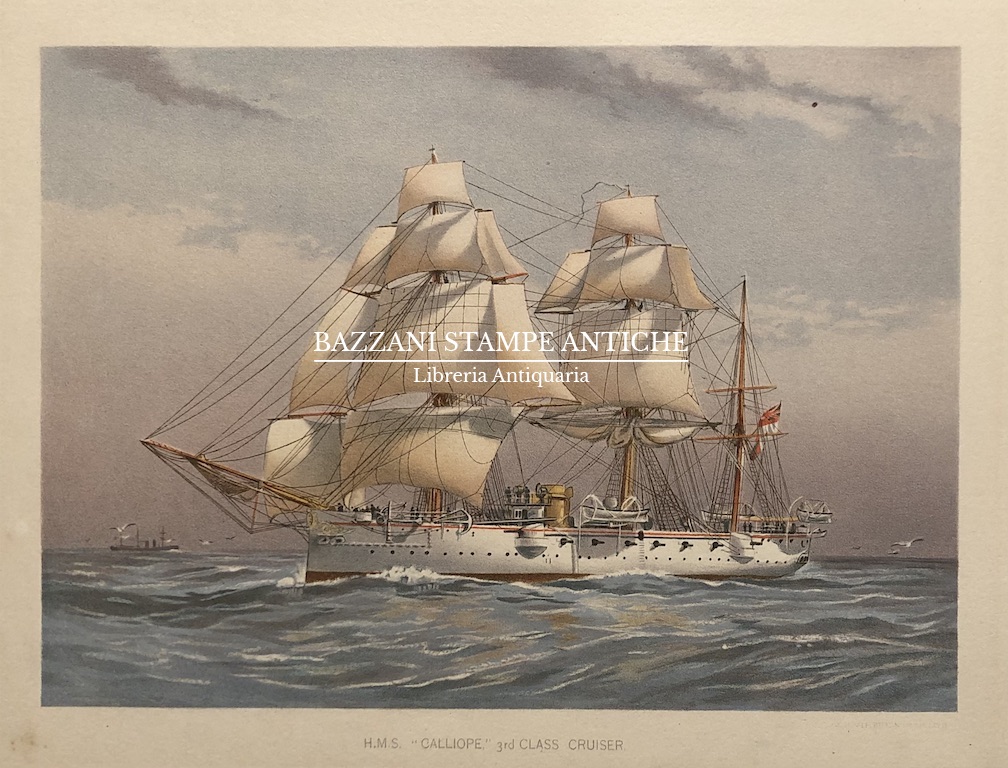 Descrizione: Cromolitografia tratta dall’opera “Her Majesty’s Navy, including its deeds and battles” di Charles Rathbone Low con illustrazioni tratte da disegni di W. Christian Symons e W. Fred. Mitchell, edita a Londra da J. S. Virtue & co. Bel foglio.