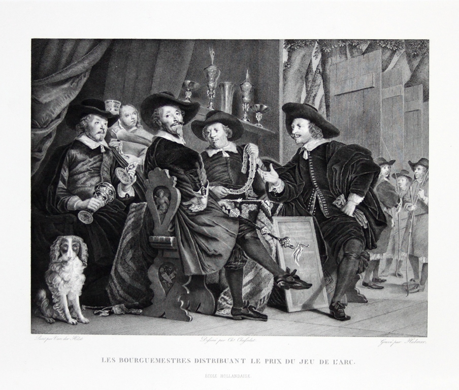 Descrizione: Incisione tratta da un soggetto di Van der Helst, stampata e pubblicata dall’editore parigino Félix Hermet all’interno della raccolta dal titolo “Le Musée du Louvre ─ Collection de 500 Gravures au burin Representant les Principaux Chefs d’Oeuvre de la Peinture e de la Sculpture du Musee du Louvre” edita fra il 1877 ed il 1879.