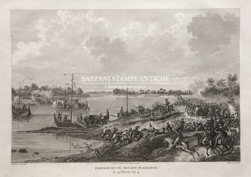Descrizione: Incisione tratta dall’opera “Campagnes des Français sous le consulat et l’Empire..” di Carle Vernet. Bel foglio, 302 x 464 mm,
