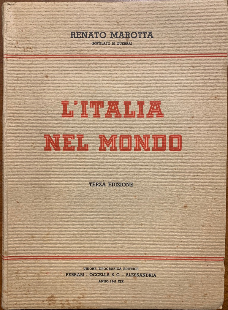 Un volume in 8° (250 x 180 mm), pagine: 207, (3). Legatura in brossura editoriale con titoli in nero e rosso sul piatto e sul dorso. Firma d’appartenenza sul foglio di sguardia. Terza edizione. Ritratto di Renato Marotta stampato su carta patinata. Bell’esemplare.
