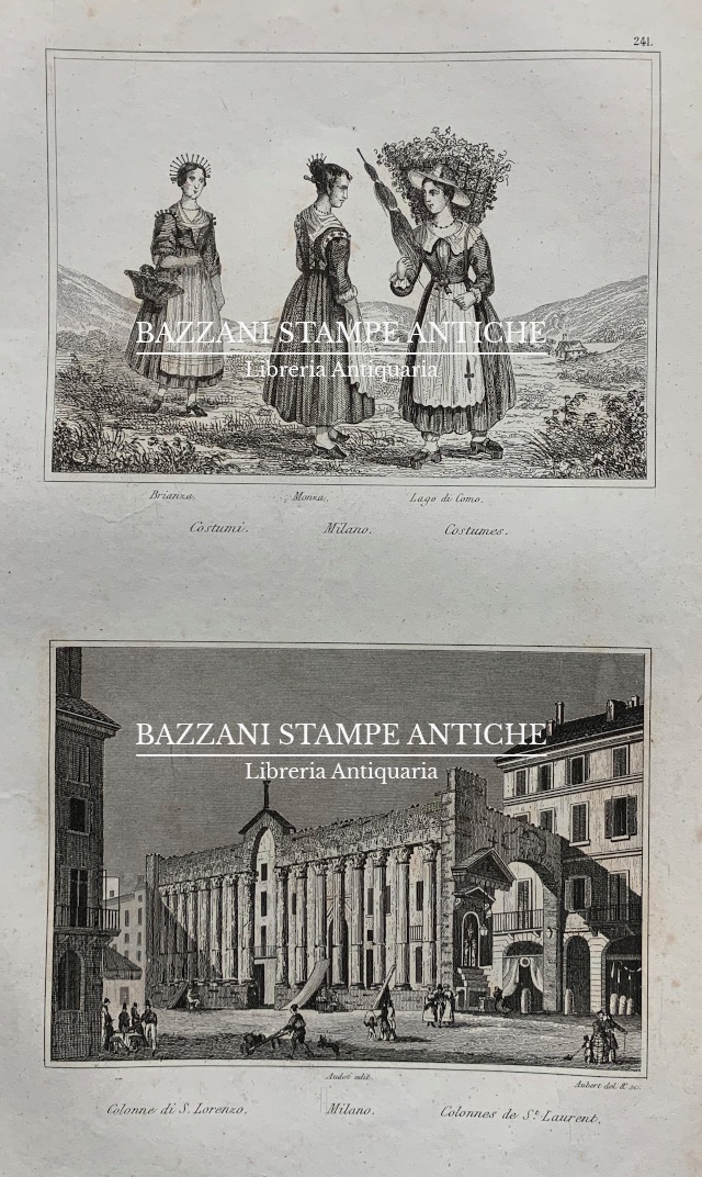 Descrizione: Coppia di vedute stampate in un unico foglio tratte da “L’Italia, descritta e dipinta con le sue isole, la Sicilia, Sardegna, Elba, Malta, Eolie, di Calipso ecc.” raccolti e pubblicati da Audot padre. Torino presso Giuseppe Pomba e C. 1837. Bel foglio.