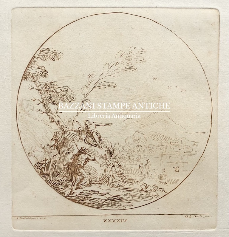 Descrizione: Incisione tratta dalla raccolta “Collection de cent pensées de Mr Gabbiani…” stampata a Roma nel 1786 da Venance Monaldini. Bel foglio.