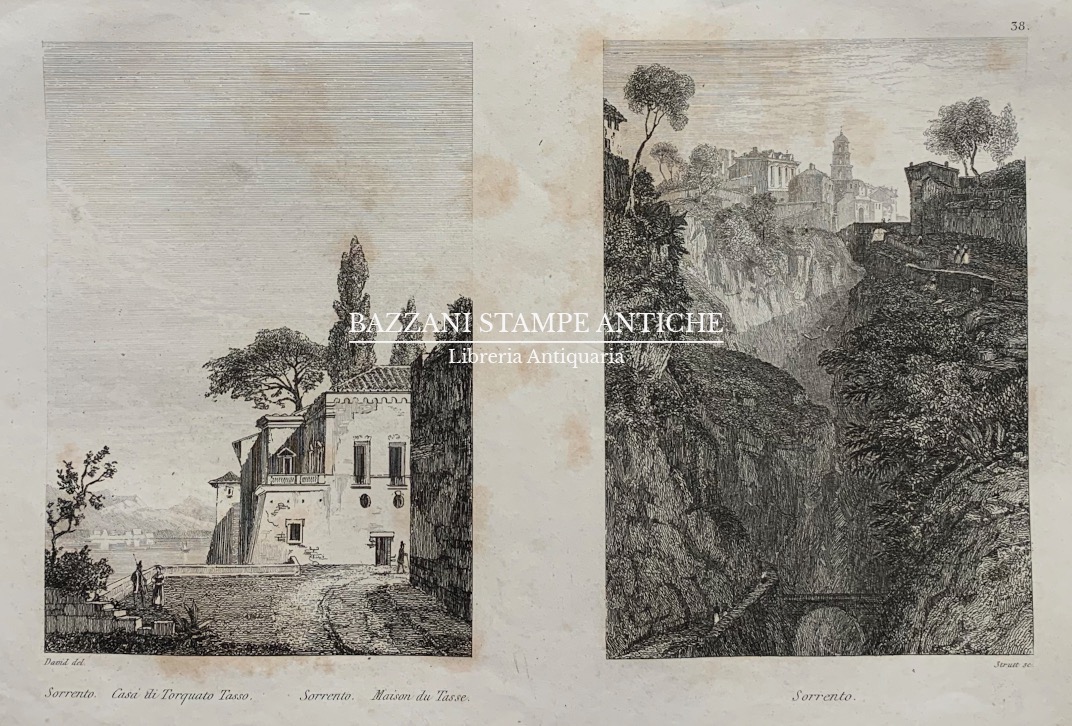 Descrizione: Coppie di vedute stampate in un unico foglio, tratte dall’opera “L’Italia, descritta e dipinta con le sue isole, la Sicilia, Sardegna, Elba, Malta, Eolie, di Calipso ecc. […] raccolti e pubblicati da Audot padre” stampata a Torino presso Giuseppe Pomba e C. nel 1837.
